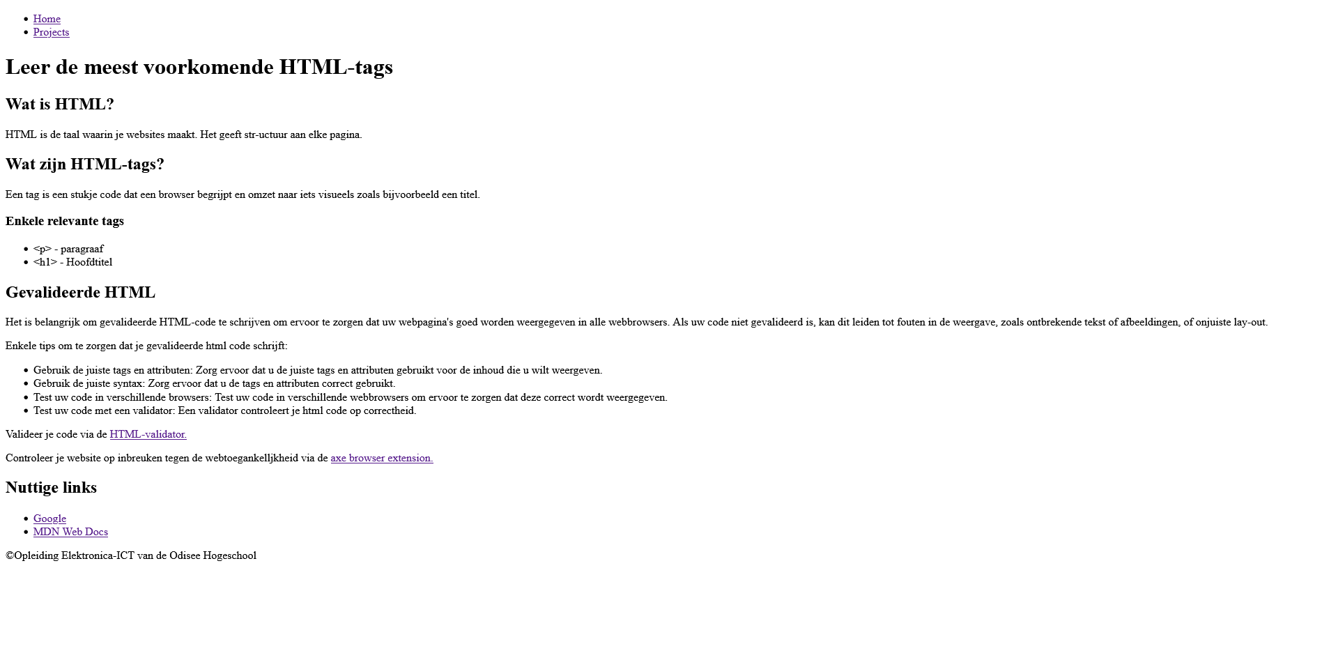 <main>. - HTML valideren via (W3C, aXe).
